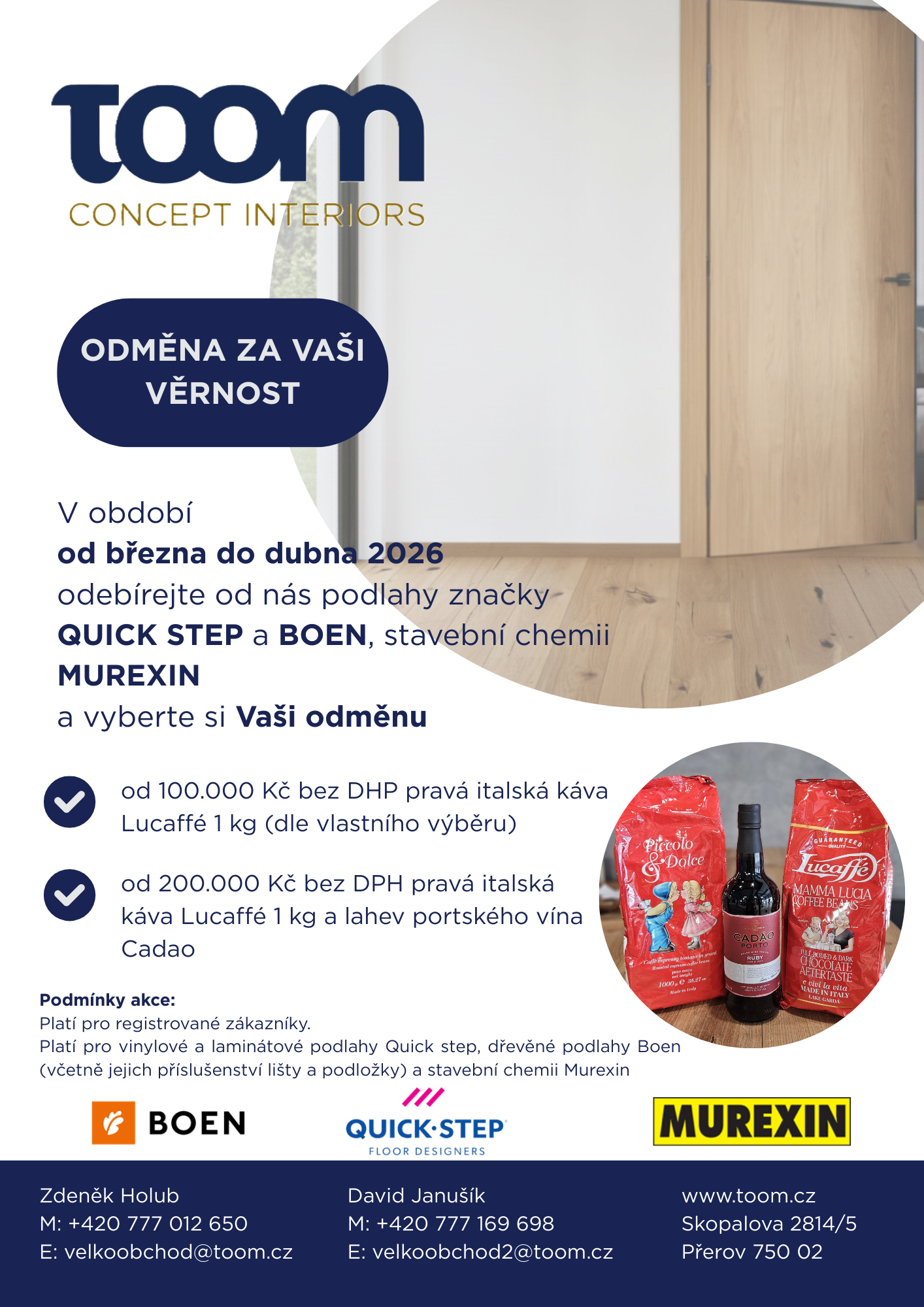 Toom interier s.r.o. nabízí komplexní služby při realizaci podlah a dveří už 25 let. Snažíme se o individuální přístup, kdy klademe důraz na funkčnost a estetické řešení interiéru.